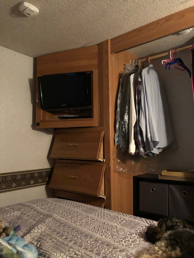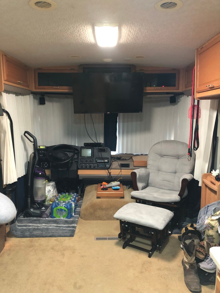 Before removing the captain chairs. The after 😁Before “remodeling” the master bedroom area. During After ♥️Home Sweet Home Literally working in the rain on the last run of fence before going on shift. Our new neighbors are kind of nosey.